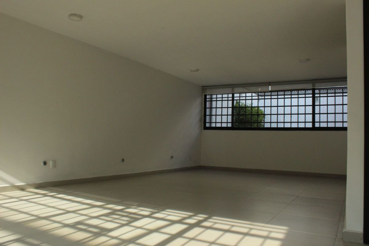 Planta baja: estancia principal de muy buen tamaño, comedor, cocina(muebles nuevos), estudio, hall, medio baño, área de lavado, terraza exterior con muro llorón, estudio con baño, estacionamiento para 3 autos.