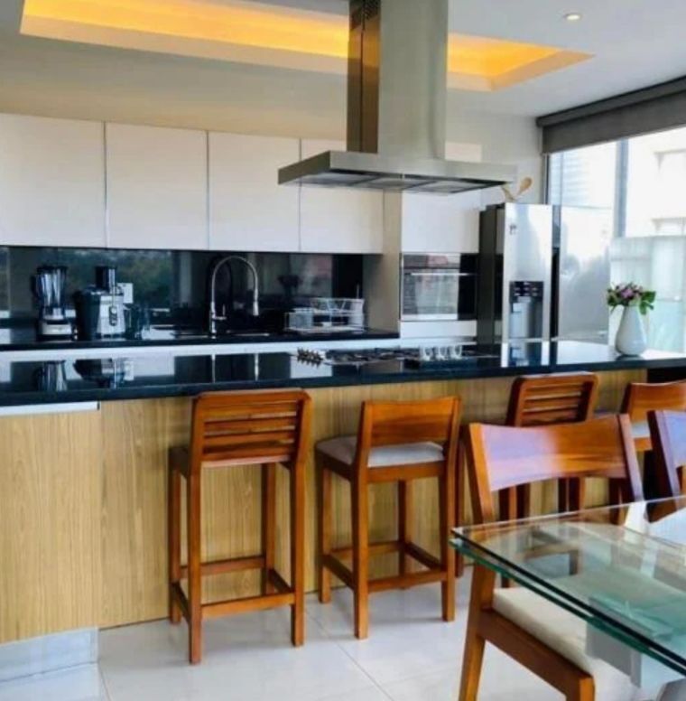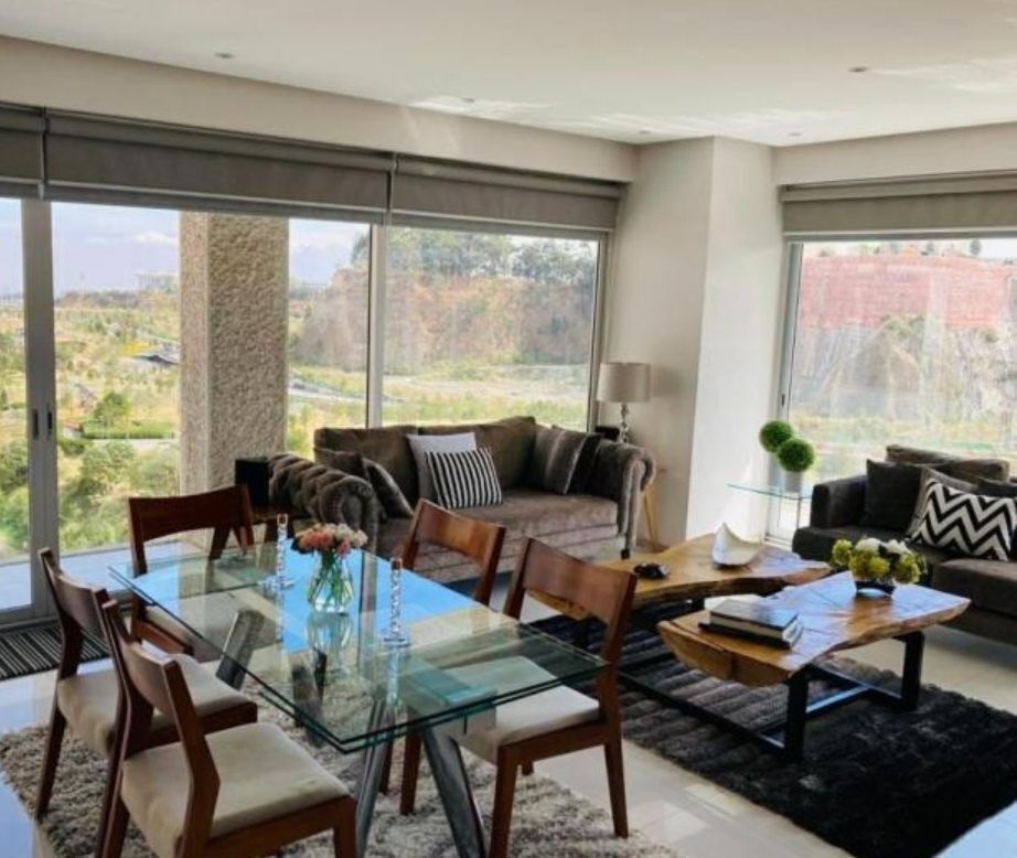 Exclusivo departamento TOTALMENTE AMUEBLADO ubicado en PenÃnsula Tower Santa Fe con una vista inmejorable hacia la Mexicana, dentro de la zona financiera mas importante de la CDMX, 165m2, estancia principal, cocina comedor, 3 recamaras, 3 baños, 2 estacionamientos.