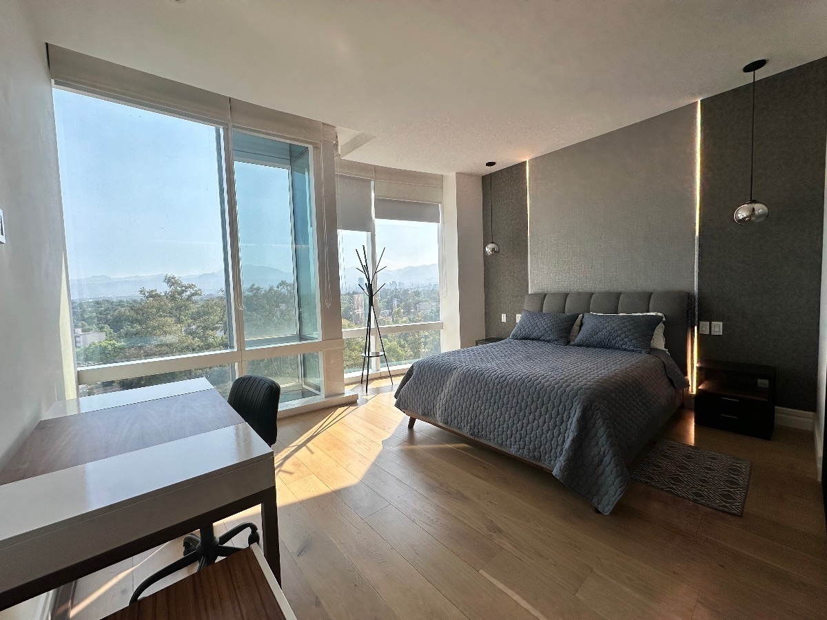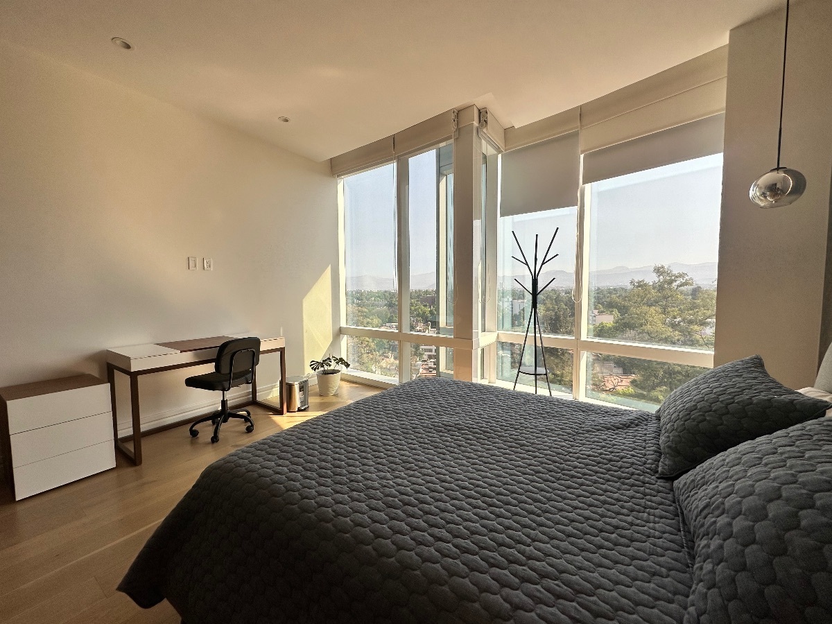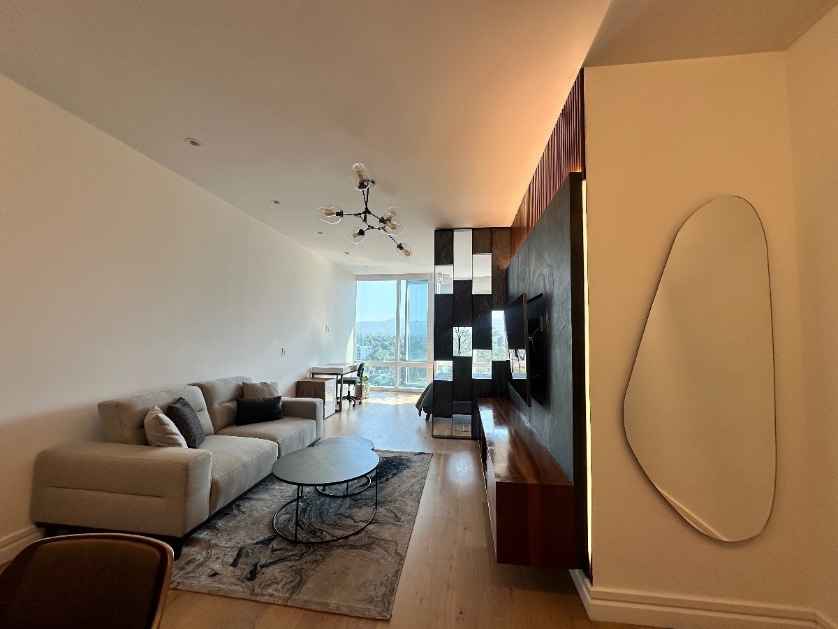 Loft totalmente amueblado en RENTA TORRE MITIKAH, 72m2, cocina equipada, barra desayunador, estancia ( con sofá-cama), 2 baños completos, área de lavado, 1 lugar de estacionamiento, el departamento cuenta con aire acondicionado.