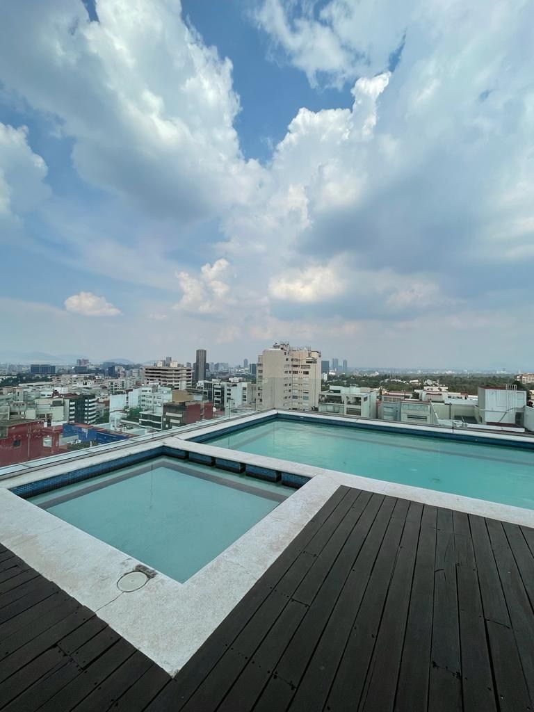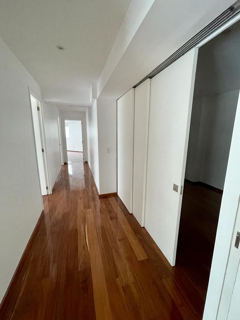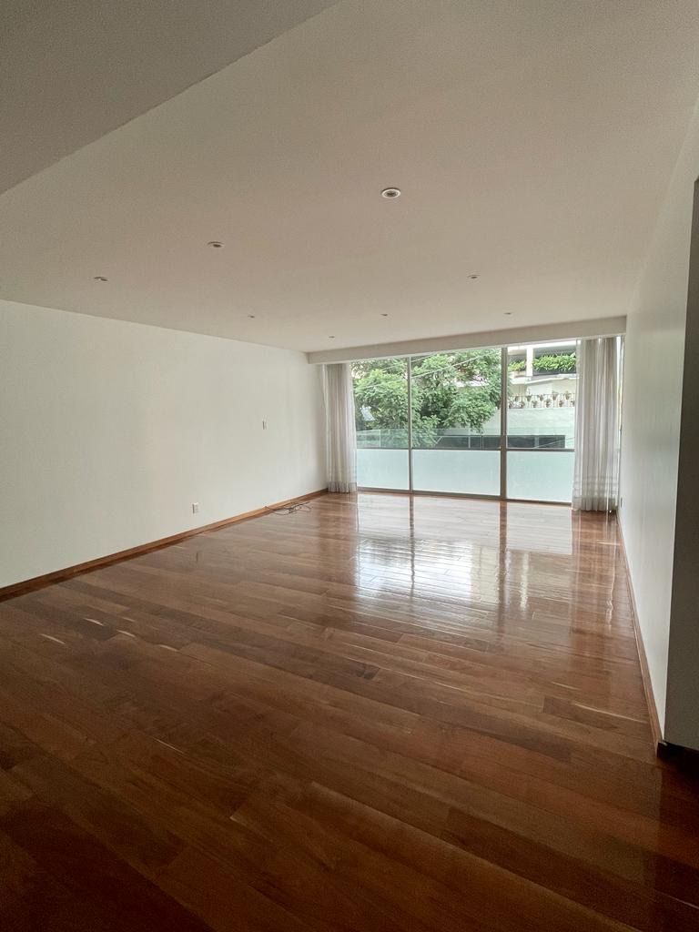 Exclusivo departamento en RENTA ; 212m2, estancia principal muy amplia, sala de tv, cocina equipada, comedor, 3 recamaras, 4.5 baños, cuarto de lavado y cuarto de servicio, 2 balcones, bodega, 4 lugares de estacionamiento, 2 elevadores,.